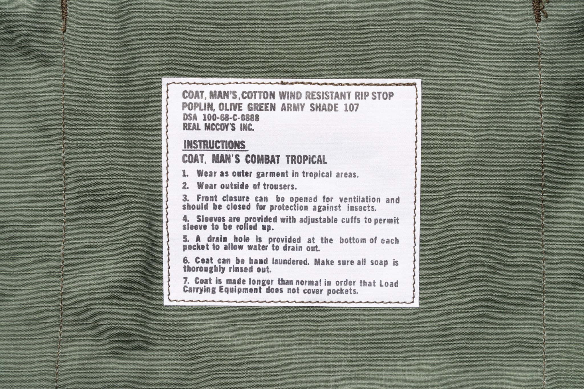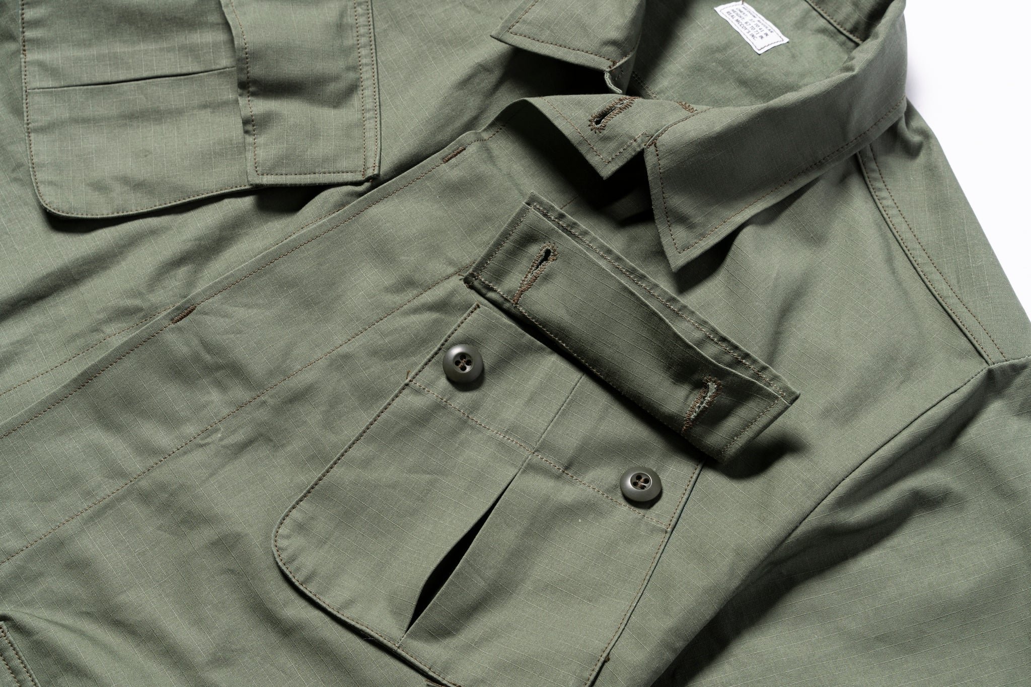 The COAT, MAN’S, COTTON was introduced in the early 1960s as part of the U.S. military’s tropical combat uniform, alongside the Jungle Fatigue Jacket. This reproduction is based on the 1968 iteration, which marked a significant evolution in design and functionality. The fabric was upgraded to ripstop, an innovative material at the time, and the silhouette was updated with a lower rise and a switch to a zipper fly for improved practicality.