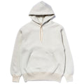 This pullover hoodie, made from mid-weight 10 oz. loopwheel knitted cotton, features a brushed loopback French terry, making it warmer and softer than its unbrushed counterpart. Loopwheel machines, which produce this tubular constructed fabric, are renowned for their slow knitting pace, producing only a single meter of fabric per hour. However, this low thread tension technique sets them apart from contemporary manufacturing methods and creates an exceptional and distinctive fabric. The resulting material is reminiscent of hand-woven textiles and possesses a unique stretchy quality and the washed look of old American sweatshirts that can only be reproduced on a loopwheel knitting machine. This loopwheel sweat is knitted in Wakayama, Japan, using extremely rare machines known in Japan as Tsuriami-ki, requiring specialized skill and technique, exclusively for The Real McCoy’s.