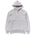This pullover hoodie, made from mid-weight 10 oz. loopwheel knitted cotton, features a brushed loopback French terry, making it warmer and softer than its unbrushed counterpart. Loopwheel machines, which produce this tubular constructed fabric, are renowned for their slow knitting pace, producing only a single meter of fabric per hour. However, this low thread tension technique sets them apart from contemporary manufacturing methods and creates an exceptional and distinctive fabric. The resulting material is reminiscent of hand-woven textiles and possesses a unique stretchy quality and the washed look of old American sweatshirts that can only be reproduced on a loopwheel knitting machine. This loopwheel sweat is knitted in Wakayama, Japan, using extremely rare machines known in Japan as Tsuriami-ki, requiring specialized skill and technique, exclusively for The Real McCoy’s.