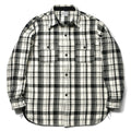 This heavy flannel shirt is made of 20 oz. cotton flannel, woven on a vintage machine to achieve a natural slubby texture. It is sturdy and insulates well, and its versatility makes it a favorite for hunting and outdoor wear.