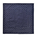 Cotton bandana using selvedge on one side. A true reproduction of the dot pattern seen in vintage bandannas.