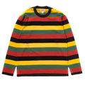 This BUCO STRIPE TEE L/S embraces the universal colors of Rastafari — red, gold, black, and green — a combination reflecting the Ethiopian flag and Marcus Garvey's Pan-Africanism movement. In the early years of the Rastafari movement, strong disapproval and hostility from colonial authorities and mainstream Jamaican society were commonplace due to their unwavering anti-establishment social and political beliefs.
