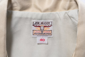 The EMBROIDERED RAYON WESTERN JACKET is a rancher style western jacket made from a heavy rayon with a carefully refined drape, lined with tencel fabric. Western wear made from materials like heavy rayon, often featuring decorative embroidery, showcases the more formal and refined side of a style traditionally associated with rugged workwear.