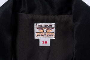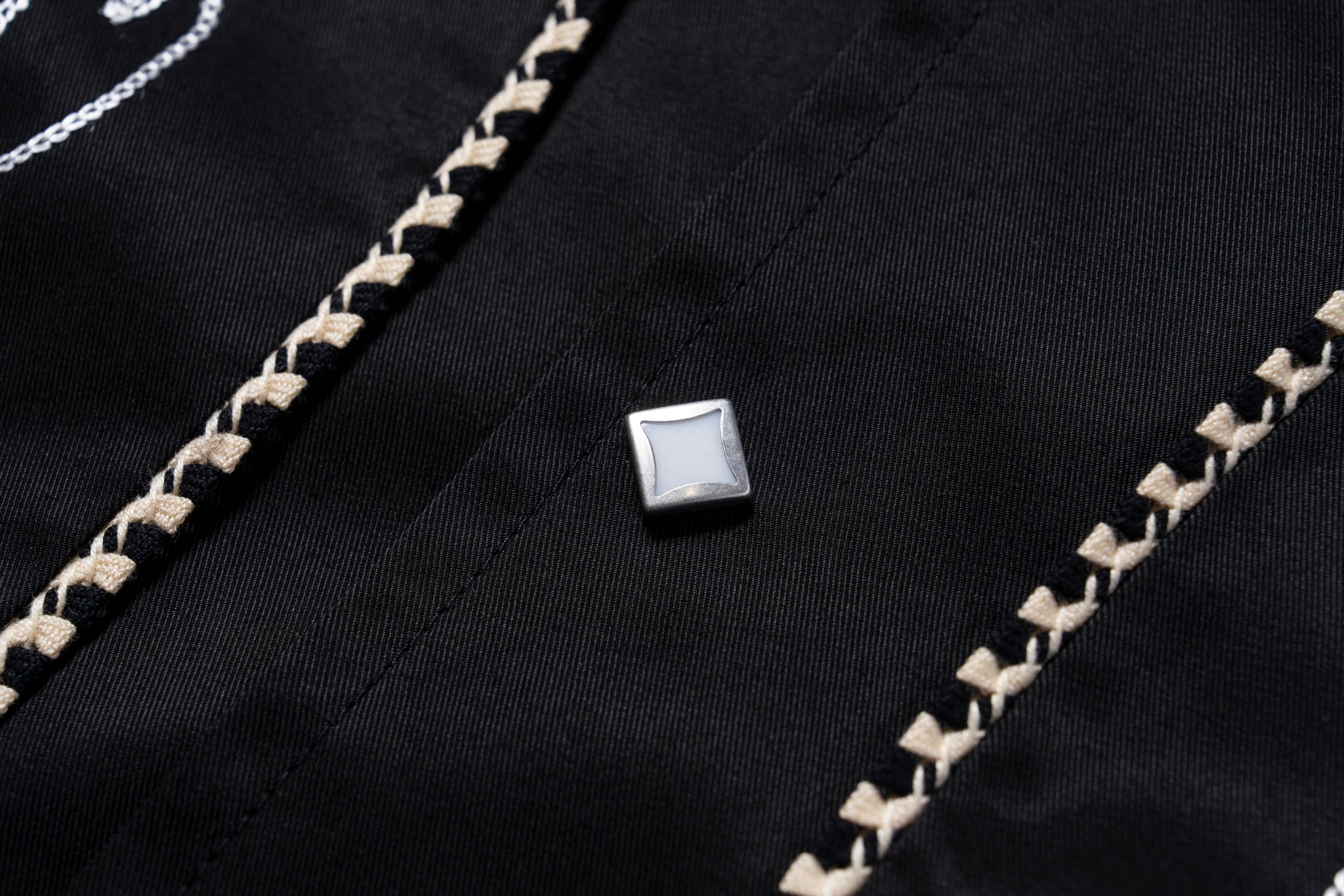 The EMBROIDERED RAYON WESTERN JACKET is a rancher style western jacket made from a heavy rayon with a carefully refined drape, lined with tencel fabric. Western wear made from materials like heavy rayon, often featuring decorative embroidery, showcases the more formal and refined side of a style traditionally associated with rugged workwear.