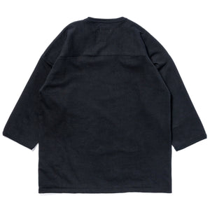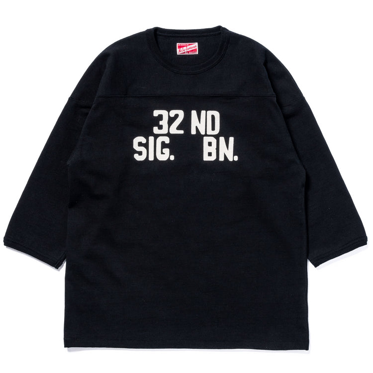 The HEAVY COTTON FOOTBALL TEE / 32ND SIG draws inspiration from 1960s American football jerseys. Made from jersey knit fabric using 8-count yarn, it achieves maximum density for a sturdy, durable feel. The tee features a yoke cut true to its era and includes reinforced binding at the sleeve openings for added strength and longevity. The HEAVY COTTON FOOTBALL TEE / 32ND SIG features a 32ND REG rubber-print detailing which has been applied by hand in our Kobe-based factory.
