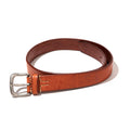 This vintage inspired belt from Joe McCoy is made from a full grain cowhide leather, the hardware is custom produced with a steel nickel finish. The Joe McCoy Bend Leather Belt is initially very stiff but will become more supple overtime with wear.