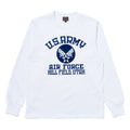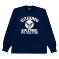 The MILITARY L/S TEE / U.S. ARMY AIR FORCE, HILL FIELD is a standard-fitting long sleeve tee made from 8oz cotton. The binder neck is designed to maintain the shape of the neckline over time and through repeated washes. The U.S. ARMY AIR FORCE, HILL FIELD rubber print has been applied by hand at our Kobe headquarters.