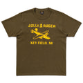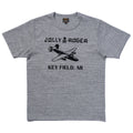 The MILITARY TEE / JOLLY ROGER, KEY FIELD is cut from 8oz. Cotton and constructed without side seams using 100% cotton thread. The t-shirt has been hand-printed at our Kobe HQ with a B-24 bomber and JOLLY ROGER, KEY FIELD motif.