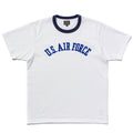 The MILITARY TEE / U.S. AIR FORCE is inspired by ringer tees of the 1970s and has been made from 100% 8oz cotton and constructed from cotton sewing thread. The U.S. AIR FORCE motif at the front has been applied using flock, a popular method of printing throughout the 1960s and 70s.