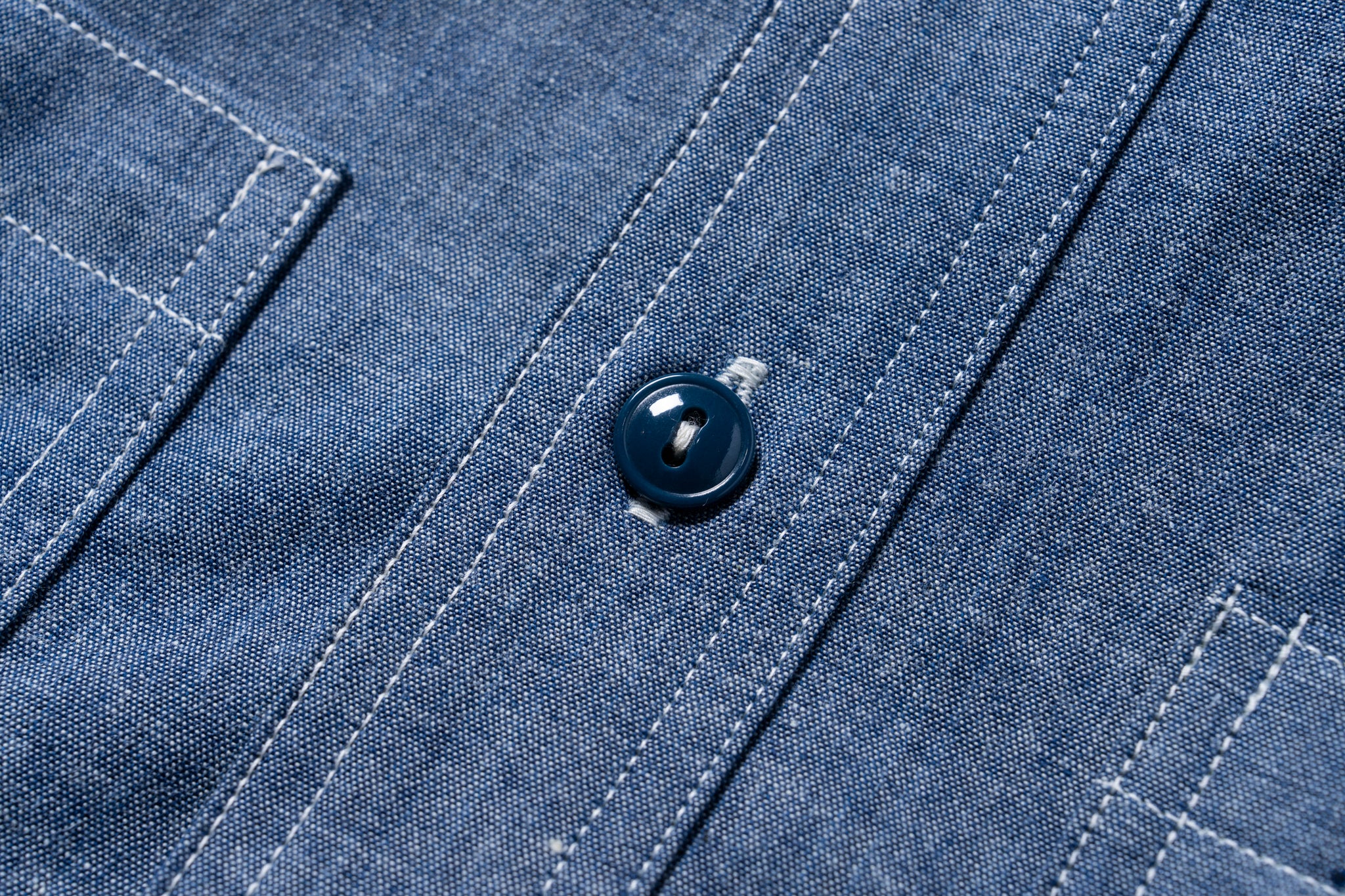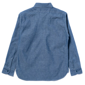 The Real McCoy's Uniforms U.S. NAVY CHAMBRAY SHIRT L/S (MODIFY) is a reproduction of the WW2 U.S. Navy sailor uniform shirt. Originally introduced in 1913 by the USN, the chambray shirt has a rich history of being a menswear staple many years before it was adopted by the military. It was described in 1941 by the United States Navy Uniform Regulations as part of a uniform "worn by officers and enlisted men when engaged in work which by reason of its nature would soil their other uniforms... this pertains more particularly to those in the engineers force, to artisans, and mechanicians, to the deck force when scaling or painting the ship or handling stores.” The garment was worn by many in the USN, including sailors and Chief Petty Officers, by virtue of its versatility as a uniform piece. For cost effectiveness, the Chambray shirt underwent a number of simplifications throughout its manufacture, while this model is true to the more elaborate and considered early iterations.