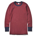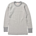 A standard long-sleeved thermal shirt with a striped pattern on a waffle knit. A versatile thermal shirt that can be worn under a shirt for layering or on its own.